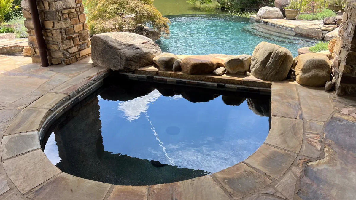 natural rock & boulder spa - sculpted to blend with the landscape. Built from stone or boulder clusters, it gives a natural, organic feel.